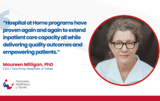 November 13, 2025 (AUSTIN, Texas) ––Texas’ public and teaching hospitals applaud the enactment of legislation to fund the federal government through Jan. 30, 2026, and re-start innovative Hospital at Home programs for Medicare and Medicaid patients. [...]